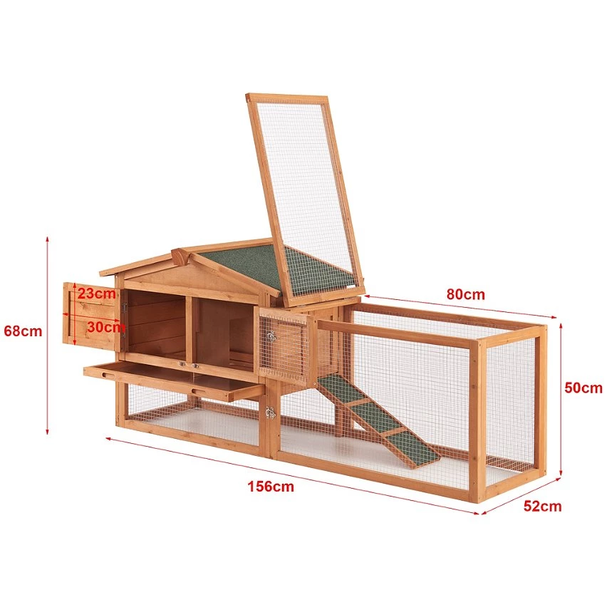 Ce clapier à 2 niveaux offre un espace de vie confortable à vos petits animaux de compagnie. Une rampe fait la connexion entre l’espace de repos abrité et l’enclos ouvert en bas pour que les animaux puissent se décider librement quand ils sortent et se retirent. Grâce au sol ouvert, ils se sentent à l’aise, connectés à la nature et ainsi ils peuvent profiter de la pelouse dans le jardin. Le grillage offre une bonne aération à vos amis à quatres pattes et vous offre la visibilité optimale pour les surveiller.