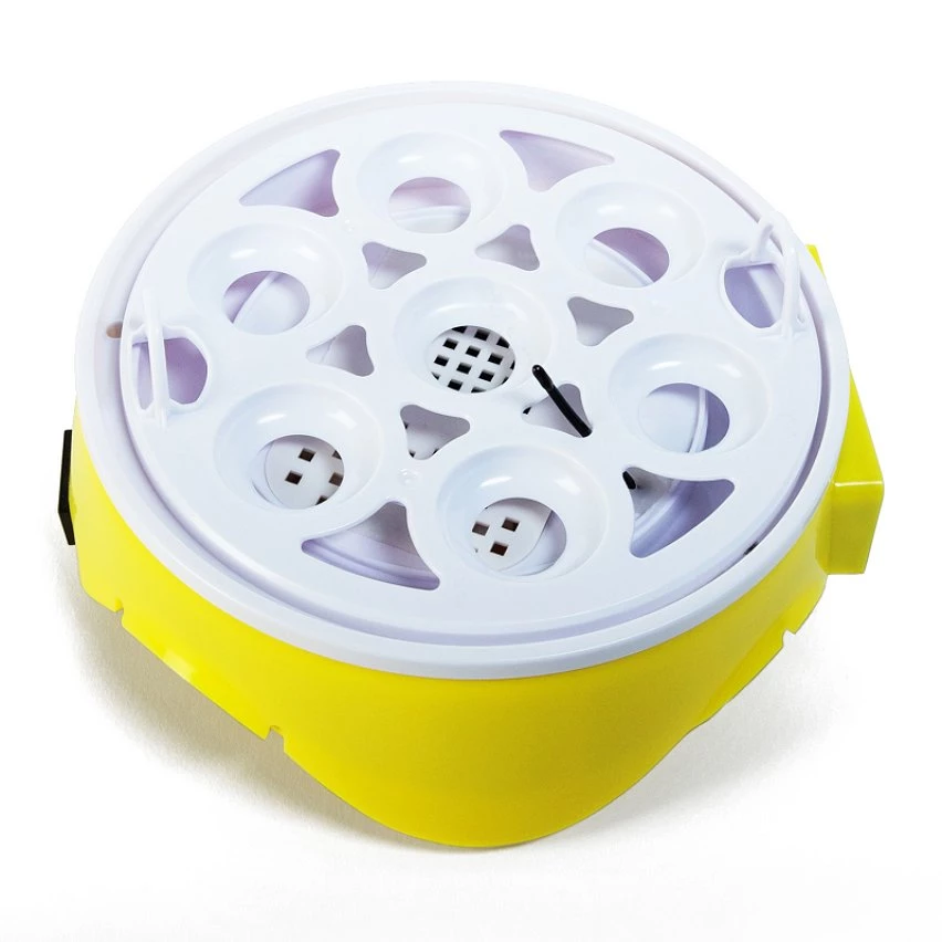 Certaines espèces de poules sont plus maternelles que d’autres et il arrive parfois que quelques races délaissent leurs œufs une fois pondus. Il est donc recommandé dans ce cas d’utiliser des incubateurs, aussi appelés couveuses, pour permettre aux œufs d’éclore. Avec cette couveuse manuelle capable d’accueillir jusqu’à 7 œufs, vous pouvez très rapidement agrandir votre élevage en toute simplicité. Idéal pour un petit élevage familial, l’incubateur vous permet d’obtenir un meilleur taux d’éclosion. La couveuse manuelle est fabriquée avec une base plastique de couleur jaune ainsi qu’un couvercle transparent vous permettant d’apercevoir en continu la transformation des œufs. Grâce à ses 7 emplacements, l’incubateur propose une capacité d’accueil allant jusqu’à 7 œufs de poules. Chaque socle pour œufs mesure 3,3 cm.Parfaite pour les débutants, la couveuse dispose d’un écran de 2,5 x 1 cm afin de contrôler la température et de la régler de 20 à 50° à l’aide des boutons « + » et « -« . Grâce à sa forme dôme et son système de ventilation, l’air pourra circuler de façon homogène et les conditions de couvaison seront idéales. Comme son nom l’indique, la couveuse vous impose de retourner les œufs à la main 2 à 3 fois par jour dès le deuxième jour d’incubation afin que l’embryon ne se colle pas à la membrane de l’œuf. Nous vous conseillons de procéder à cette manipulation jusqu’au dix-huitième jour environ d’incubation. Astuce ID Market : faites un trait ou tout autre symbole sur vos œufs afin de voir si ces derniers ont été retournés. Grâce à ce système de couvaison artificielle, vos petits poussins naîtront après les 21 jours d’incubation. Laissez-les encore une journée dans leur couveuse afin de laisser sécher leur plumage et qu’ils prennent quelques forces avant de rejoindre vos autres poules. Dimensions de l’incubateur manuel 7 œufs- Dimensions totales : Longueur 16 cm x largeur 15,5 cm x Hauteur 15,2 cm- Dimensions de l’écran : 2,5 cm x 1 cm- Dimension du socle d’un œuf : 3,3 cm- Dimension du trou d’aération : 0,7 cm- Température réglable de 20 à 50°- Capacité : 7 œufs de poules- Puissance 20W – Tension 220V- Certifications CE