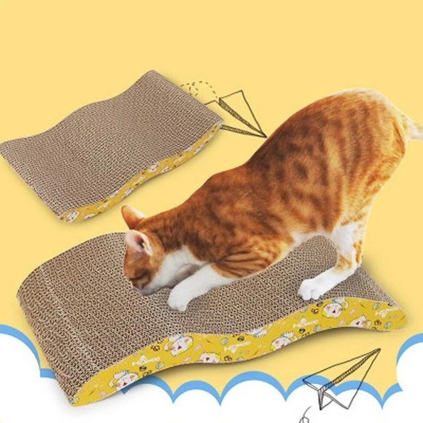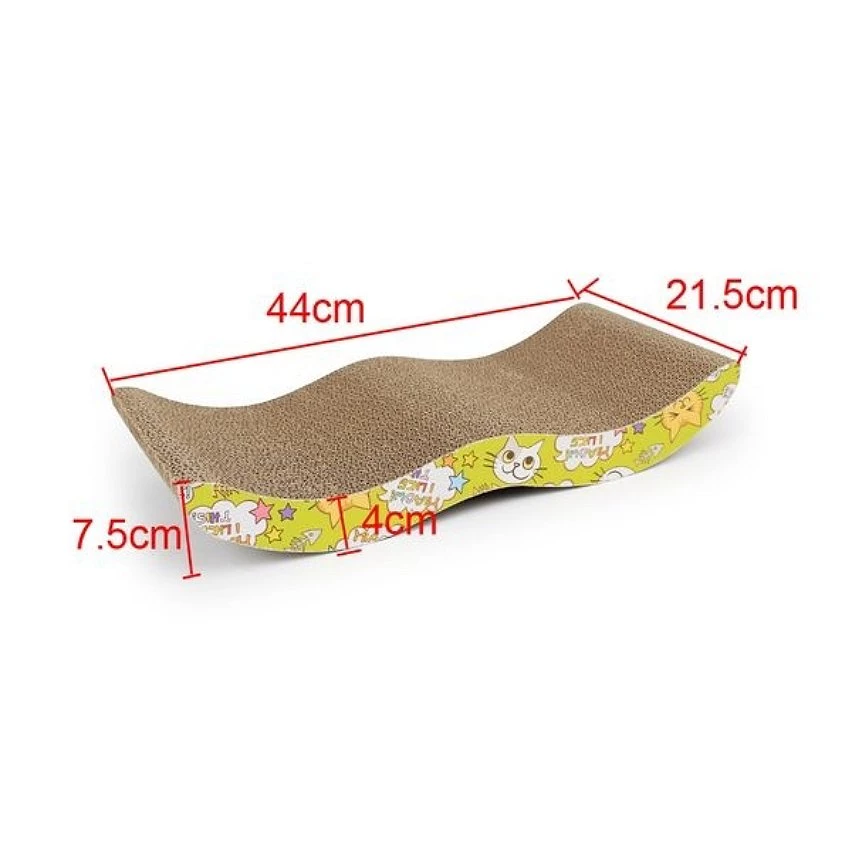 Ce tapis griffoir pour chat est le cadeau à offrir à un proche qui pense constamment au bien-être de son animal de compagnie. Il est conçu en carton et présente une double face. Sa forme en vague est parfaite pour servir de canapé.* Dimensions : 44 x 21,5 x 7,5 cm
