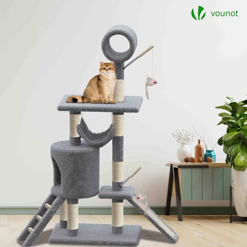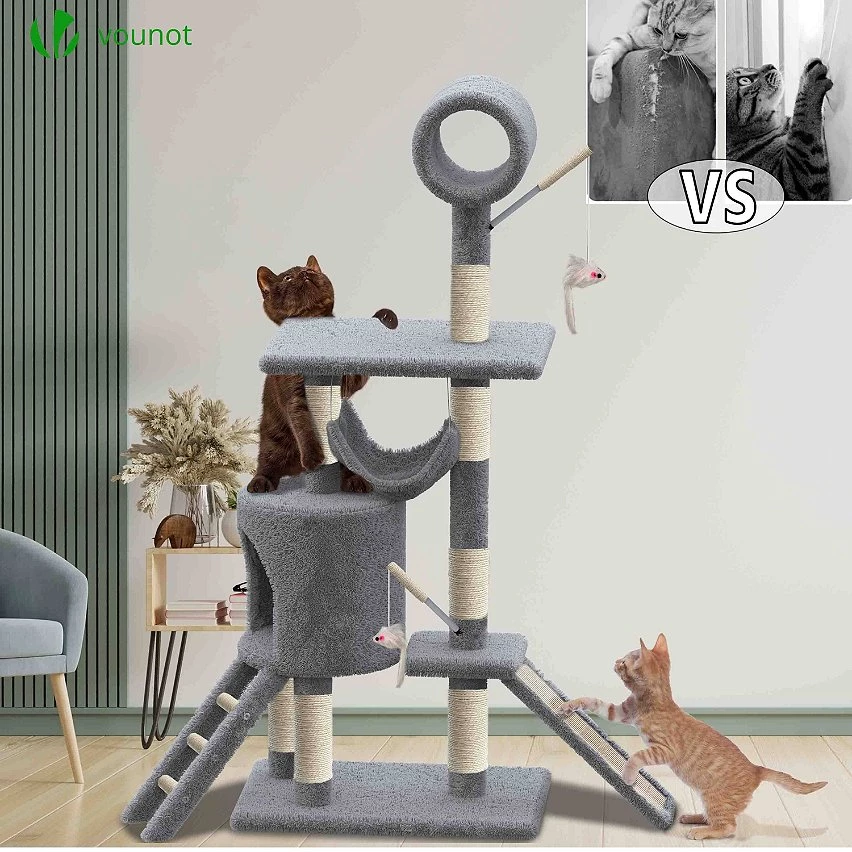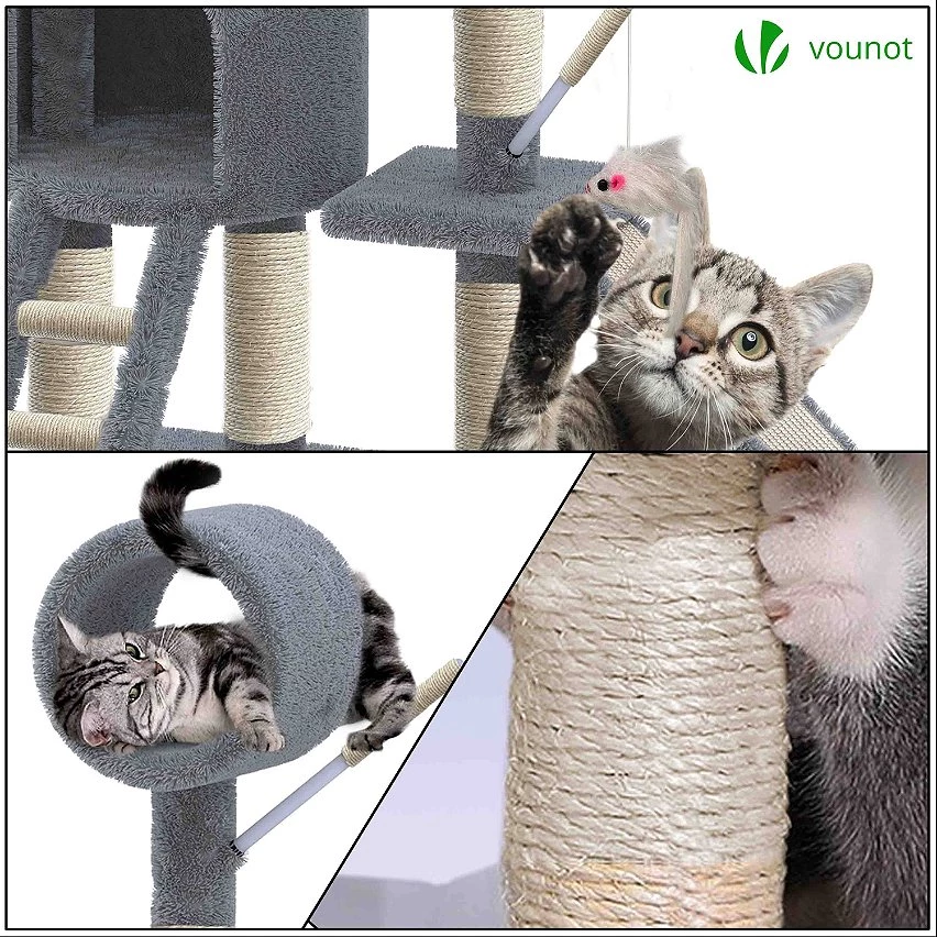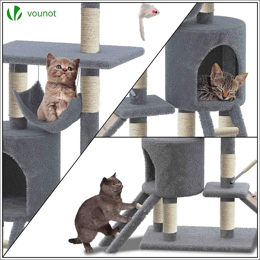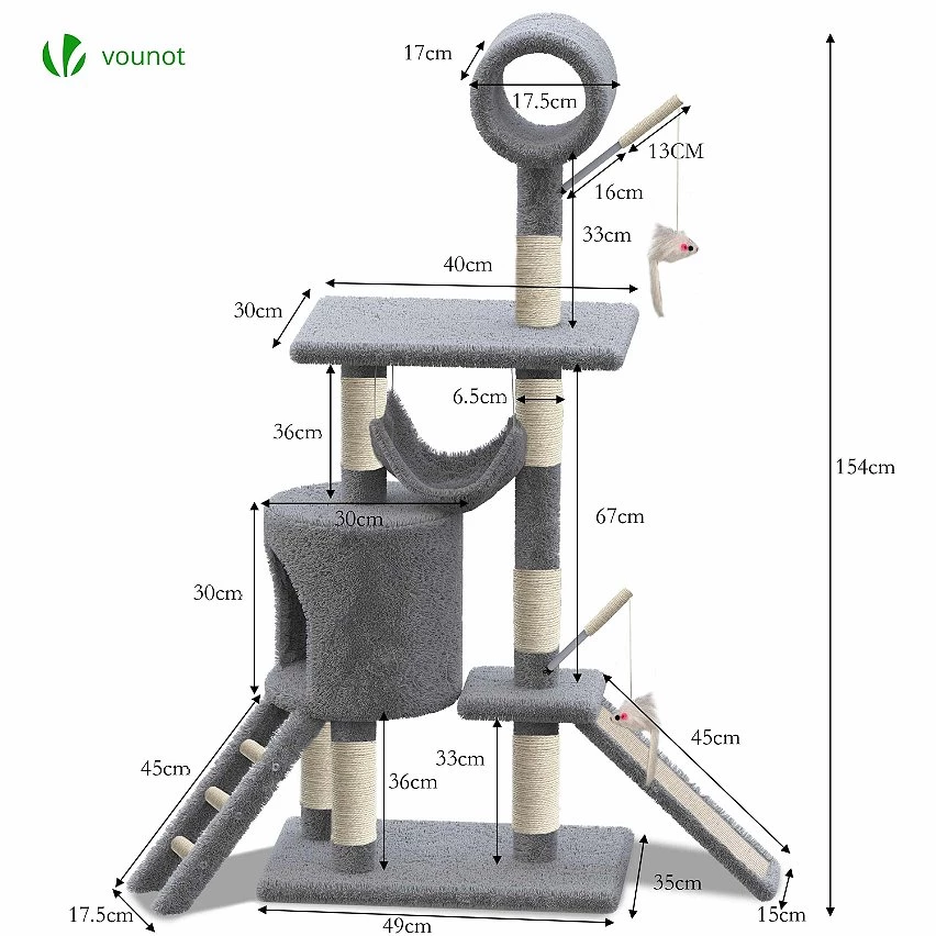 | Arbre à Chat 154cm avec Griffoir Plateforme Niche XXL Gris | ||