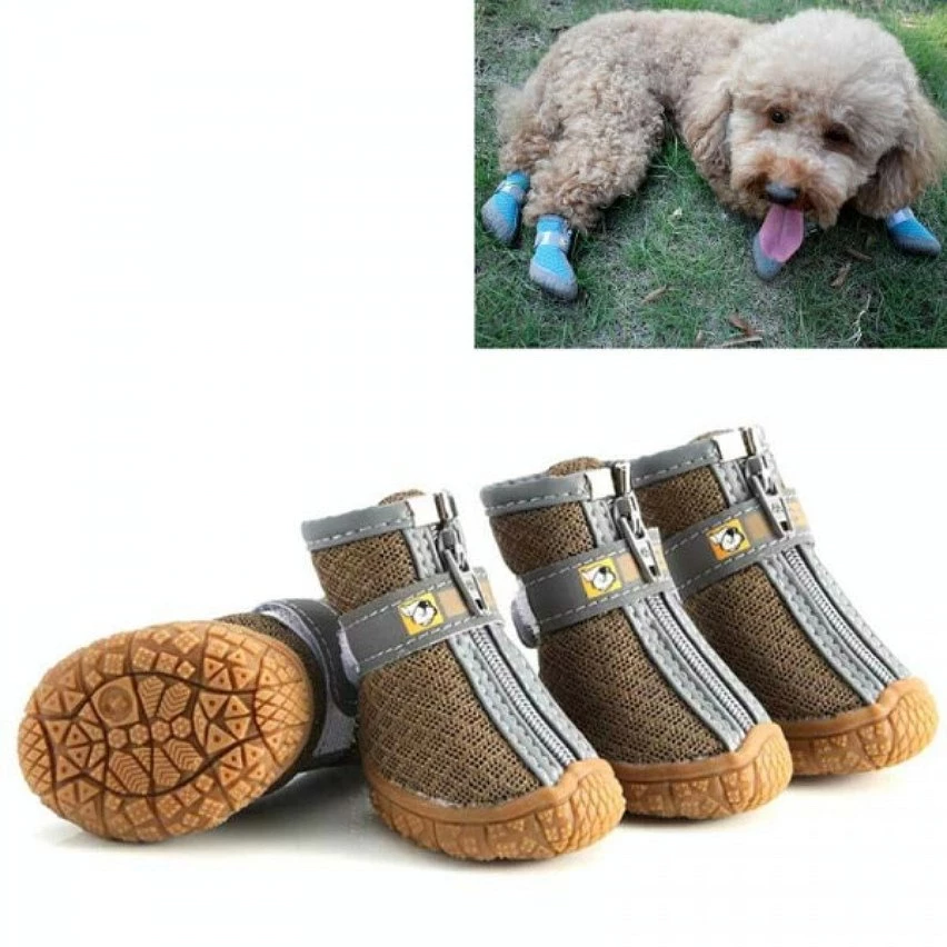 Remise 😍 Wewoo 4 pièces / ensemble chaussures de chien respirantes antidérapantes et résistantes à l’usure fournitures pour animaux de compagnie, taille: 3,8×4,3 cm ⭐