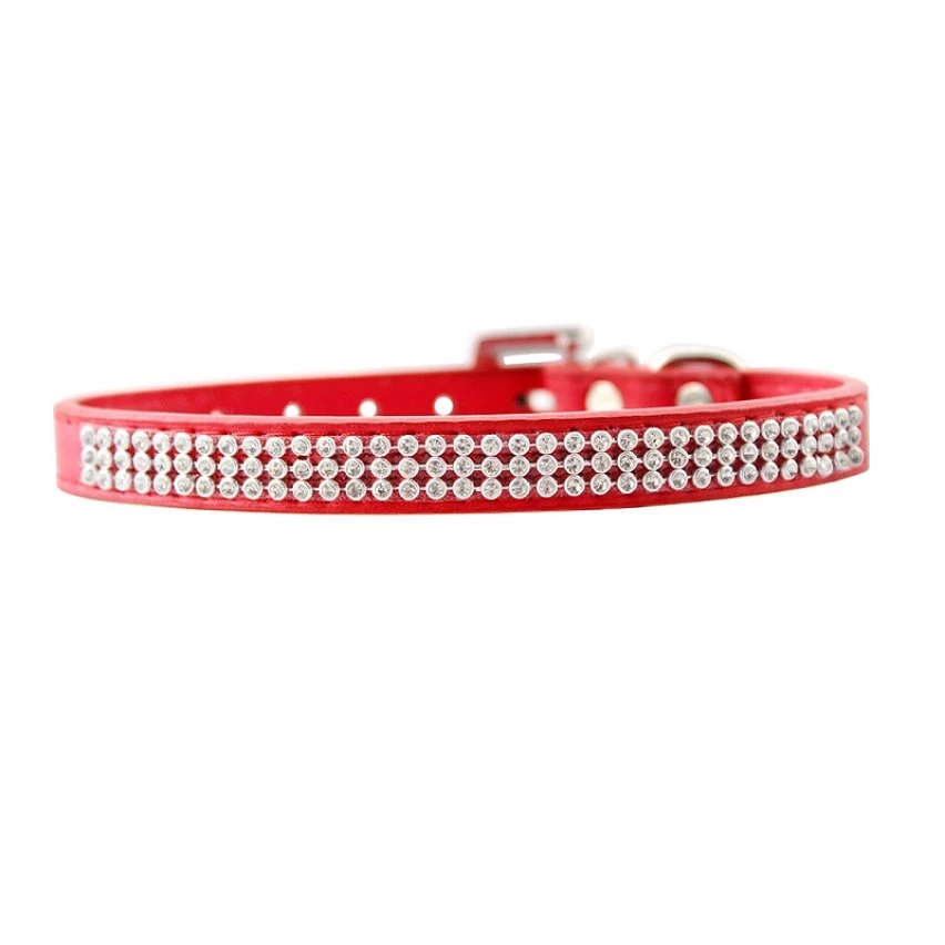 Collier Chien & Chat rouge pour animaux de compagnie, Taille: S, 1.5 * 37 cm PU diamant clouté Pet Collar produits