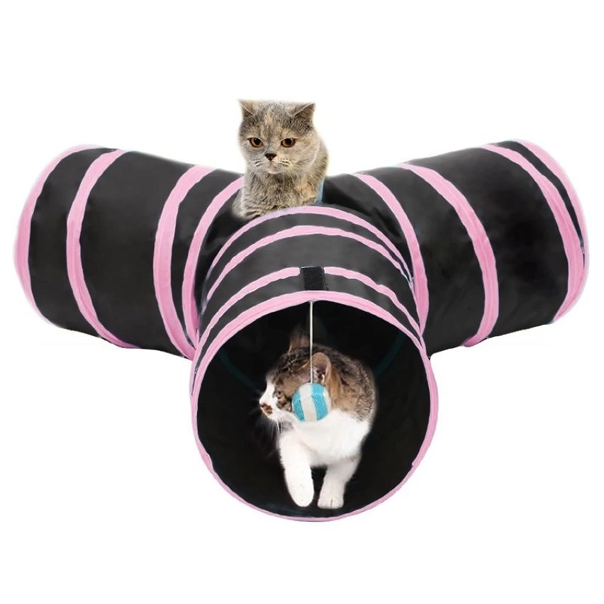 Jouet pour Animaux rose Pliable 3 sorties exercice tunnel de chat avec une balle suspendue